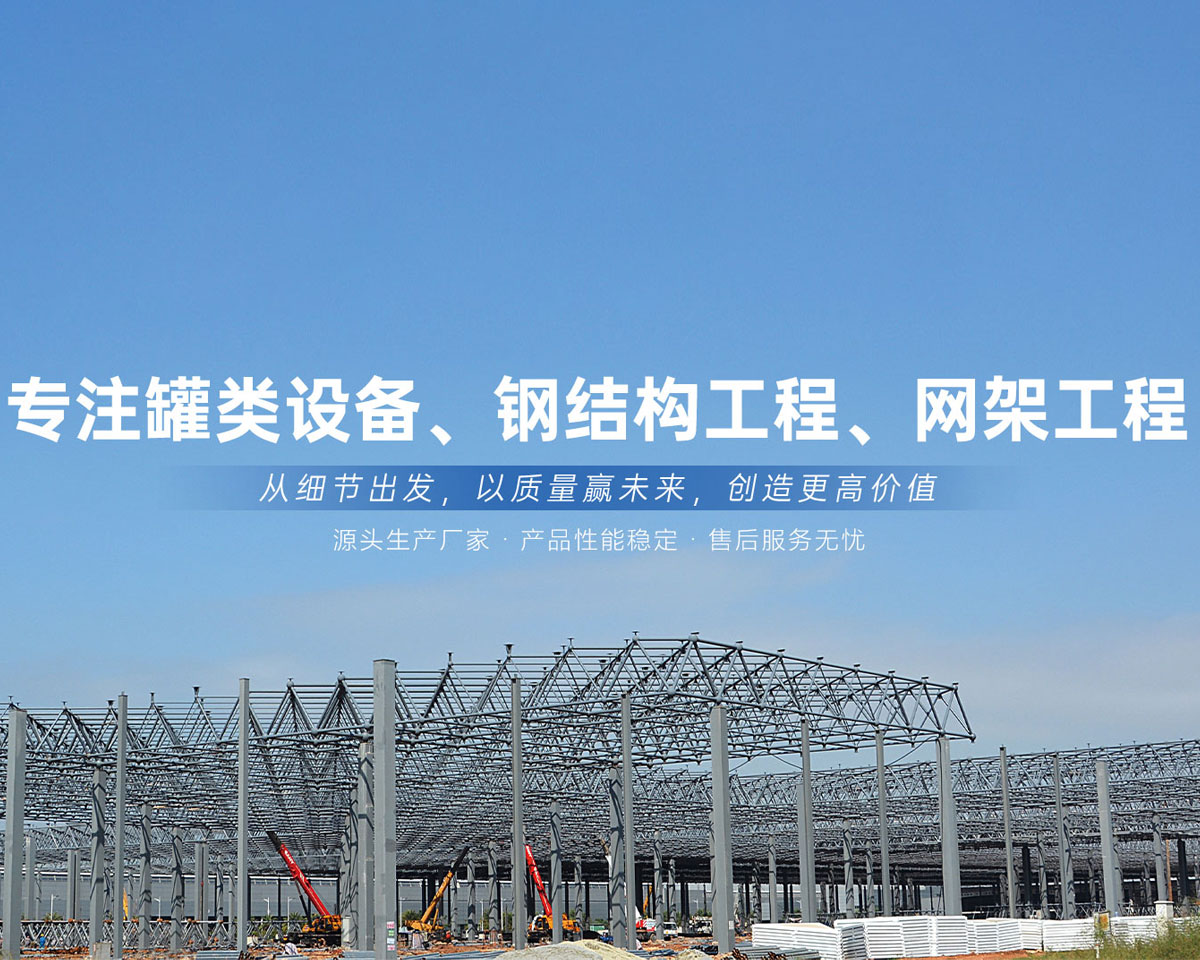 各式罐類設備、鋼結構工程、網架工程的設計、制作、安裝為一體